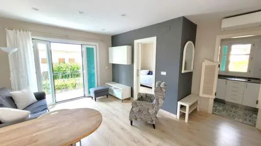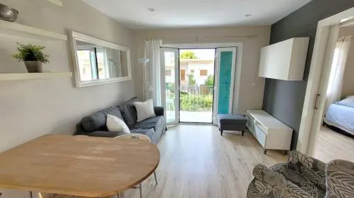 Acogedor apartamento de dos dormitorios en Bellavista, a pocos pasos del mar. Cuenta con un dormitorio doble y un dormitorio individual, aire acondicionado en el salón, dos balcones y plaza de parking en un carport. Ubicación ideal, a un corto paseo de la playa.