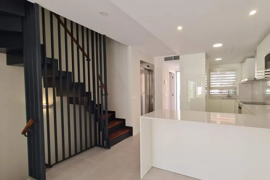 La distribución se distribuye en 4 plantas con ascensor privado y escaleras a todos los niveles. La planta de entrada consta de un aseo de invitados, un amplio salón con cocina americana, puertas que dan a la terraza privada y al jardín con acceso a los jardines comunitarios y a la bonita zona de la piscina. La primera planta tiene un generoso dormitorio principal con baño ensuite y además un dormitorio doble con baño con ducha ensuite. El nivel superior ofrece una maravillosa zona de planta abierta que es ideal como un dormitorio o una oficina disfrutando de una terraza privada con vistas panorámicas a las colinas y la piscina comunitaria y también hay una terraza trasera para fines de lavandería. Todos los dormitorios disponen de armarios empotrados y amueblados, controles domóticos, persianas eléctricas o manuales y conexión a Internet/TV.