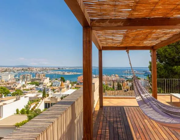 Description Esta casa de tres plantas está situada en el punto más altos de El Terreno y ofrece privacidad, mucha luz natural y vistas espectaculares.