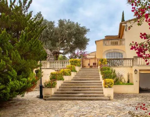 La casa de invitados tiene un dormitorio, un baño, una cocina y una bodega. Junto a ella se encuentra la gran piscina y acceso a un jardín mediterráneo y con espectaculares vistas sobre la bahía de Palma.