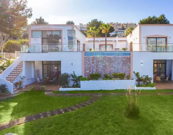 Este luminoso chalet se encuentra en una de las zonas residenciales más solicitadas del suroeste, que ofrece mucha tranquilidad y exclusividad. Debido a su posición elevada se disfruta de una maravillosa panorámica de la bahía de Santa Ponsa y el paisaje circundante. El centro del pueblo con una playa de arena, el Club Náutico y los cuatro campos de golf de Santa Ponsa, están en las inmediaciones. Palma y el aeropuerto se alcanzan en unos 20 – 25 minutos en coche. La superficie se distribuye en un amplio salón-comedor con chimenea, una cocina totalmente equipada, el dormitorio principal con baño y vestidor y un aseo en la planta piso. En ese nivel está también la espaciosa terraza de piscina con zona de barbacoa. En la planta baja consta de cuatro dormitorios, tres baños (dos en suite), otra cocina con zona de comedor y un trastero. Además, cuenta con un patio, un garaje con acceso a la planta inferior y un bonito jardín de fácil mantenimiento.