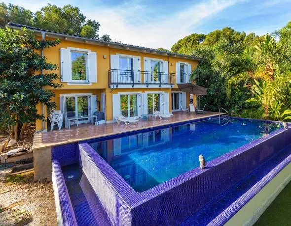 Se trata de una casa Kampa, una vivienda prefabricada de origen alemán con calidad premium y de construcción energéticamente eficiente. Destaca con luminosas y amplias habitaciones con un máximo nivel de confort. Se sitúa en una calle muy tranquila entre dos conocidos centros turísticos, a tan solo 15 – 20 km de Palma y del aeropuerto y disfruta de absoluta privacidad. El mar está a corta distancia a pie y en pocos minutos en coche hay acceso a una amplia infraestructura, así como los puertos deportivos, campos de golf y playas del suroeste. La vivienda se distribuye en dos plantas, con la entrada en la planta baja. Aquí consta de un salón-comedor con acceso a la bonita terraza con piscina, una moderna cocina totalmente equipada, un dormitorio, un baño, un despacho y un lavadero. El dormitorio principal con baño en suite y vestidor, más otros dos dormitorios y un baño, se encuentran en la planta superior. Además, hay una buhardilla que se utiliza como trastero. La casa está rodeada de un exuberante jardín mediterráneo con riego automático y dispone de dos plazas de aparcamiento.