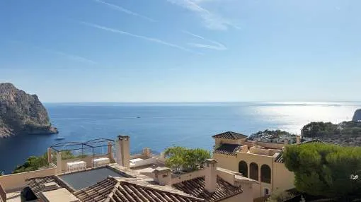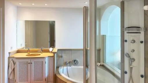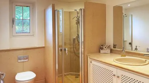 Este bonito apartamento de orientación suroeste se encuentra en una codiciada residencia de lujo con servicio de 5 estrellas que cuenta con recepción, spa, sauna, baño de vapor, gimnasio, piscina cubierta, jacuzzi, así como jardines mediterráneos, dos piscinas al aire libre y plazas de aparcamiento en superficie. A poca distancia a pie se encuentra el conocido club de playa, con terrazas para tomar el sol, piscina de agua salada y restaurante. El campo de golf de Andratx Camp de Mar y Port Andratx, con el puerto deportivo “Club de Vela” y el conocido paseo marítimo con restaurantes y boutiques, se encuentran fácilmente accesibles.