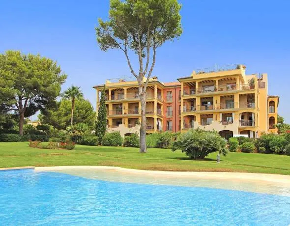 Este atractivo apartamento en planta baja con acceso al jardín se encuentra en una urbanización mediterránea cerca de los tres famosos campos de golf y del puerto deportivo de Port Adriano.