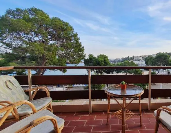 Apartamento en primera línea de playa en Porto Cristo, situado en un primer piso con balcón frontal y espectaculares vistas abiertas al mar, la playa y la marina.