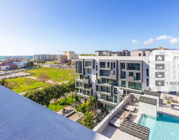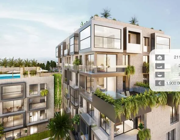 Esta nueva y exclusiva urbanización de lujo con áticos y apartamentos de diseño se está construyendo a una distancia perfecta de la playa, en la conocida zona residencial cerca Portixol, Llevant Nou. El mobiliario de alta calidad, los planos inteligentes y las paredes de cristal de la sala permiten ver la belleza de Palma. El edificio de siete plantas con 84 apartamentos de nueva construcción comprende 10 áticos dúplex con una superficie habitable de entre 211 m² y 423 m² y terrazas panorámicas de 360° en la azotea, así como 70 apartamentos. Los modernos áticos dúplex tendrán una sala de estar/comedor con una cocina abierta, 1 – 3 dormitorios y 1 – 3 baños. El espectacular complejo ofrece espacios de vida hechos a medida con frentes de vidrio y ventanas eléctricas que te llevan a elegantes balcones privados. Hay tres líneas de equipos disponibles, cada una de las cuales transmite una sensación individual de vivir a través de materiales de alta calidad. La zona exterior ofrece un impresionante paisaje de piscinas, un agradable salón de jardín con sauna y baño de vapor, un área de fitness, así como un servicio de portero y un servicio de conserjería de 24 horas.