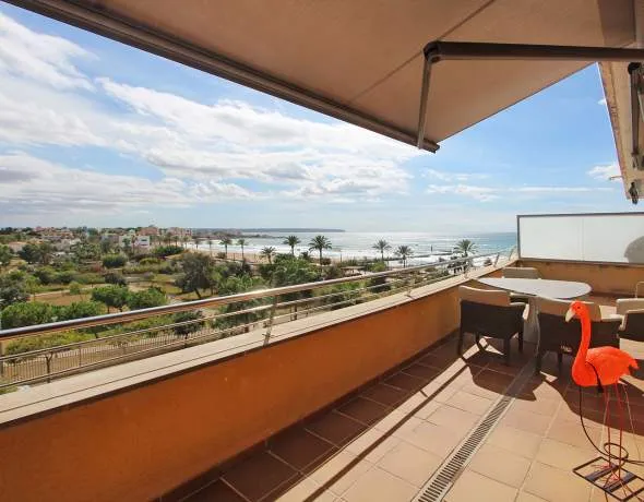 Este precioso ático está situado en el popular barrio de Es Molinar y posee dos terrazas con vistas al mar y panorámicas. Está a solo unos minutos a pie del pintoresco puerto de Portixol y del paseo marítimo con tiendas y restaurantes que se extiende desde las afueras de Palma hasta las playas de la Playa de Palma y el puerto del Arenal. La residencia cerrada está situada en segunda línea de mar y dispone de una zona ajardinada con terrazas y piscina. El luminoso apartamento ofrece un salón-comedor, una cocina independiente, dos dormitorios, dos baños (uno en suite), un aseo y una coladuria. Dos plazas de aparcamiento en el garaje subterráneo están incluidas en el alquiler. Se requiere el pago de una renta anual por adelantado.