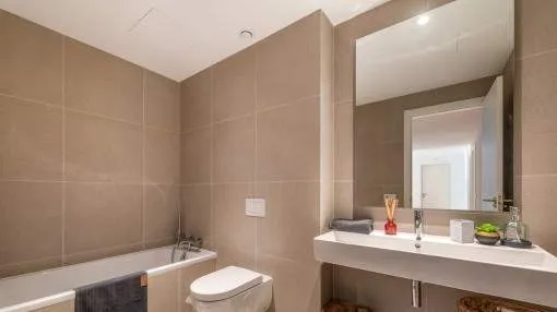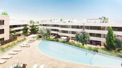 En el complejo hay apartamentos de 2, 3 o 4 dormitorios, en la planta baja con jardín, como ático con terraza en la azotea y en la primera planta con balcón. Lo más destacado es la extravagante y amplia zona de piscina comunitaria con spa y zona de bienestar y las diversas opciones de individualización mediante líneas de equipamiento seleccionables.