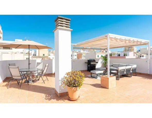 Su gran terraza privada en la azotea, accesible directamente desde el salón, es el espacio ideal para disfrutar del clima mediterráneo todo el año. Sus amplias dimensiones permiten crear distintas zonas: comedor exterior, solárium con hamacas o una acogedora área de barbacoa con cocina al aire libre. Además, cuenta con tomas de agua y electricidad.