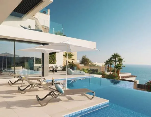 La villa de lujo está situada en una zona residencial privilegiada por encima de Cala Llamp y fue construida en una parcela de 1.038 m² con fantásticas vistas al mar y a la montaña utilizando materiales de alta calidad. Se creó un concepto de estancias luminosas y abiertas con un ambiente moderno en cuatro niveles. La planta principal alberga un luminoso salón con chimenea de gas y grandes ventanales, una cocina abierta de diseño de Leicht totalmente equipada con electrodomésticos Gaggenau y un dormitorio con baño en suite. La planta superior dispone de la espaciosa suite principal con vestidor, así como otro dormitorio con baño en suite y un patio. El sótano ofrece una sala familiar multifuncional (cine / gimnasio / sauna, etc. posible), tres dormitorios en suite, así como la coladuria. En el nivel de entrada se encuentra el garaje subterráneo con espacio para varios vehículos, que está equipado con una plataforma giratoria eléctrica para coches en la zona de entrada, salas técnicas y la amplia zona de entrada de la casa. Desde aquí, el ascensor para 6 personas da acceso a los cuatro niveles. La zona exterior con terrazas cubiertas y descubiertas, una piscina infinita de agua salada con zona integrada para tomar el sol y función de jacuzzi, zona chill-out, así como una cocina de verano invitan a permanecer. Vistas y puestas de sol únicas garantizadas.