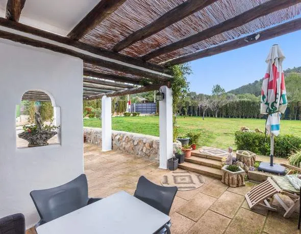 La casa se sitúa en una parcela grande en medio de un paisaje idílico y ofrece mucha privacidad. Un lugar muy tranquilo rodeado de hermosa naturaleza, a tan sólo unos kilómetros de los pueblos costeros del suroeste. Numerosos comercios, maravillosas playas, puertos deportivos y muchas oportunidades de ocio se encuentran a pocos minutos en coche. A Palma se tarda aproximadamente 20 minutos. La casa se desarrolla en una sola planta, que se divide en un salón-comedor, una amplia cocina con lavadero, el dormitorio principal con baño en suite y vestidor, tres dormitorios, un baño y un trastero. Además, hay un edificio independiente con tres habitaciones que podría convertirse fácilmente en un apartamento de invitados. Un oasis de tranquilidad con las mejores condiciones para crear la casa de sus sueños.