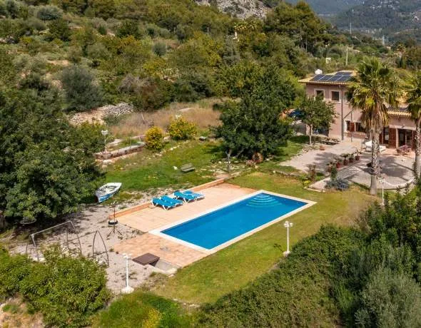 Esta fantástica propiedad en Bunyola con licencia de alquiler vacacional para 8 personas representa una excelente oportunidad de inversión, ya que también ofrece la posibilidad de ser alquilada como casa de vacaciones. La casa está situada a los pies de la sierra de Tramuntana en una parcela de casi 15,000m2 en una ubicación elevada y tranquila, en una de las zonas más solicitadas del oeste de la isla, con vistas a la bahía de Palma a lo lejos. La propiedad consta de una casa principal y una casa de invitados, ambas con confort moderno y encanto tradicional. La espectacular casa principal se distribuye en 3 niveles y una gran terraza, solarium y zona de piscina. Desde todos los niveles se puede disfrutar de magníficas vistas de Palma y la Sierra de Tramontana. La generosa superficie habitable de aprox. 310 m2 se distribuye en un impresionante salón abierto con acceso a la terraza soleada, una cocina moderna, un dormitorio en suite, así como otros 2 dormitorios dobles con baño en suite. En la planta superior se encuentra la suite principal con impresionantes vistas y acceso a terraza. Todos los dormitorios ofrecen una hermosa vista de los alrededores. La propiedad ofrece un amplio espacio de almacenamiento en el sótano, así como salas para un gimnasio o una sauna y un garaje subterráneo. La casa de invitados dispone de 2 dormitorios y 1 baño. En el aparcamiento exterior hay espacio para aprox. 8 vehículos. Esta es una propiedad en una ubicación de ensueño, donde se puede disfrutar plenamente de la mágica atmósfera mediterránea.