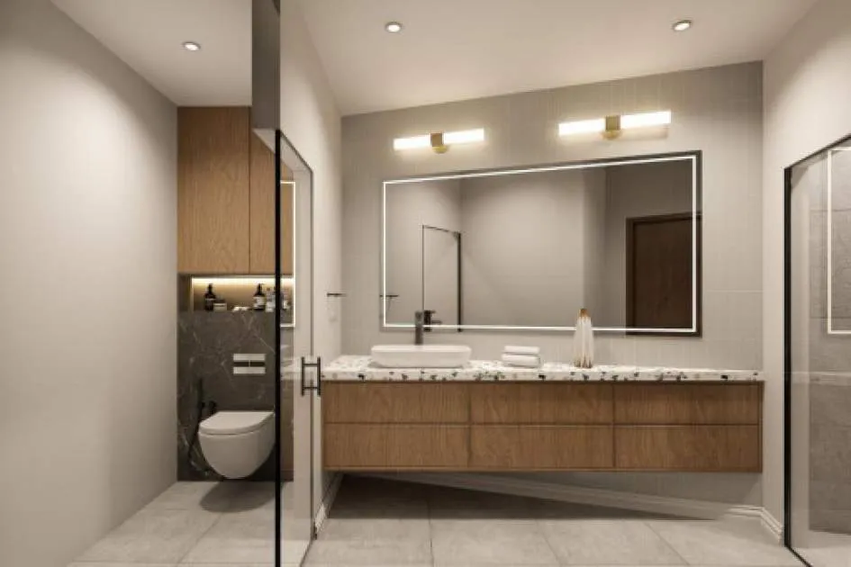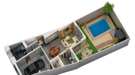 Hay acceso directo a la casa desde la zona del garaje. Allí encontrará un amplio salón-comedor con cocina americana y acceso directo a la terraza ajardinada con piscina. Este nivel se complementa con un aseo de invitados y un práctico lavadero. Otra amplia terraza, accesible tanto desde el salón como desde la cocina, invita a disfrutar de relajadas tardes de barbacoa.