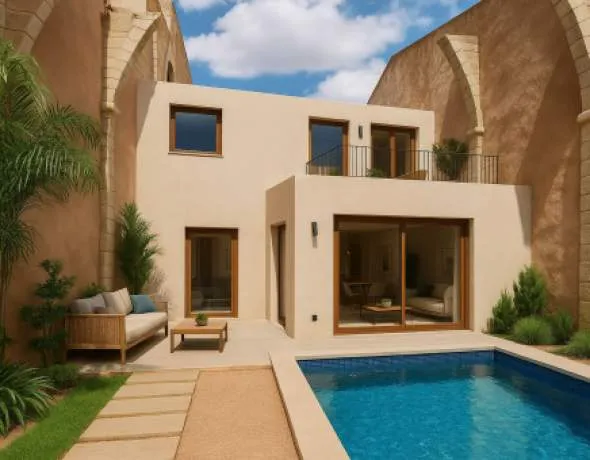 Esta casa adosada combina el encanto mediterráneo con el confort moderno y ofrece la combinación perfecta de privacidad, ubicación céntrica y equipamiento de alta calidad: un hogar ideal en el corazón de Binissalem.