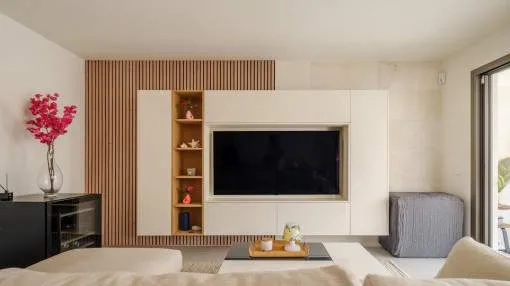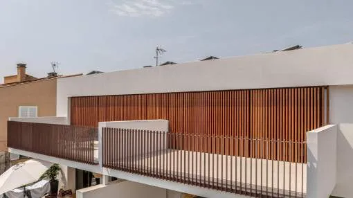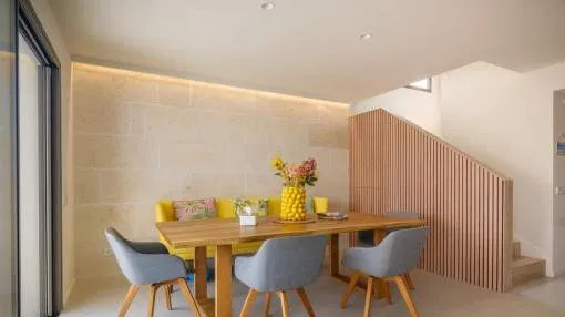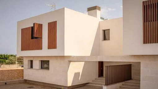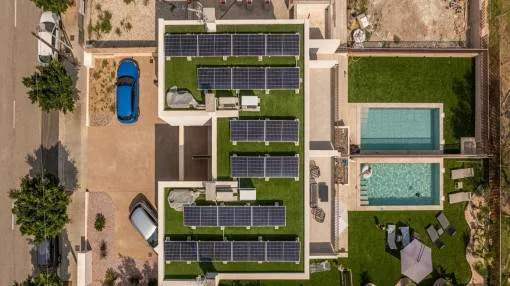 Descripción del inmueble: Esta nueva casa adosada de clase de eficiencia energética A se encuentra en una parcela de unos 300 m², a sólo 600 metros de la playa de arena de Port d'Alcúdia. La propiedad tiene una superficie construida de unos 150 m² y una superficie habitable de unos 120 m², distribuidos en 2 plantas. En el exterior, un camino de entrada ofrece espacio para aparcar hasta 3 vehículos. La casa consta de 3 dormitorios dobles con armarios empotrados, 2 baños (uno en suite) y un aseo. Una moderna cocina y un luminoso salón-comedor con acceso directo al jardín completan la oferta de espacio. El jardín está orientado al este y tiene una piscina. Hay un sistema fotovoltaico en el tejado, que contribuye a la alta eficiencia energética de la casa. El aire acondicionado centralizado garantiza un agradable clima interior en todas las zonas. Lugar & alrededores: Alcudia, que de hecho alguna vez durante la Edad Media fue la capital original de Mallorca, ofrece además del paseo marítimo más largo de la isla y por consiguiente una infraestructura perfectamente desarrollada, también algunas sub-áreas interesantes que usted debería visitar sin falta. Rodeado por un imponente muro de piedra, el casco antiguo de Alcudia ofrece un ambiente notablemente limpio y totalmente ordenado y esparce un encanto único sobre todo en las primeras horas de la tarde. Todo tipo de bares y restaurantes de todos los matices se extienden por el lugar y hay algo para todos los gustos. Tampoco debería perderse de ninguna manera el extenso mercado cada martes y domingo. Alcudia, que vista geográficamente está situada en una península, ofrece además dos barrios residenciales muy interesantes: Bonaire en el norte y Aucanada en la parte sur.