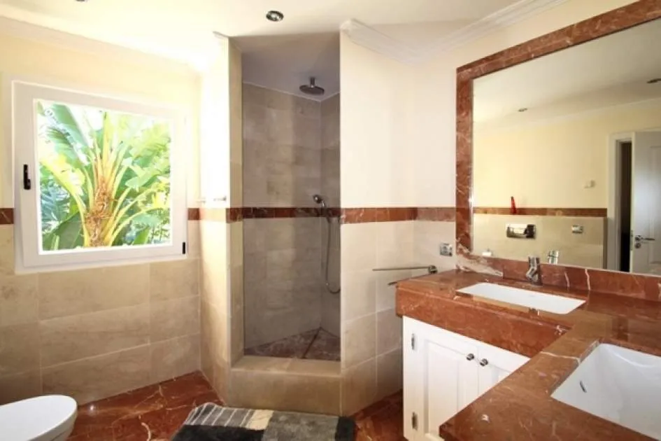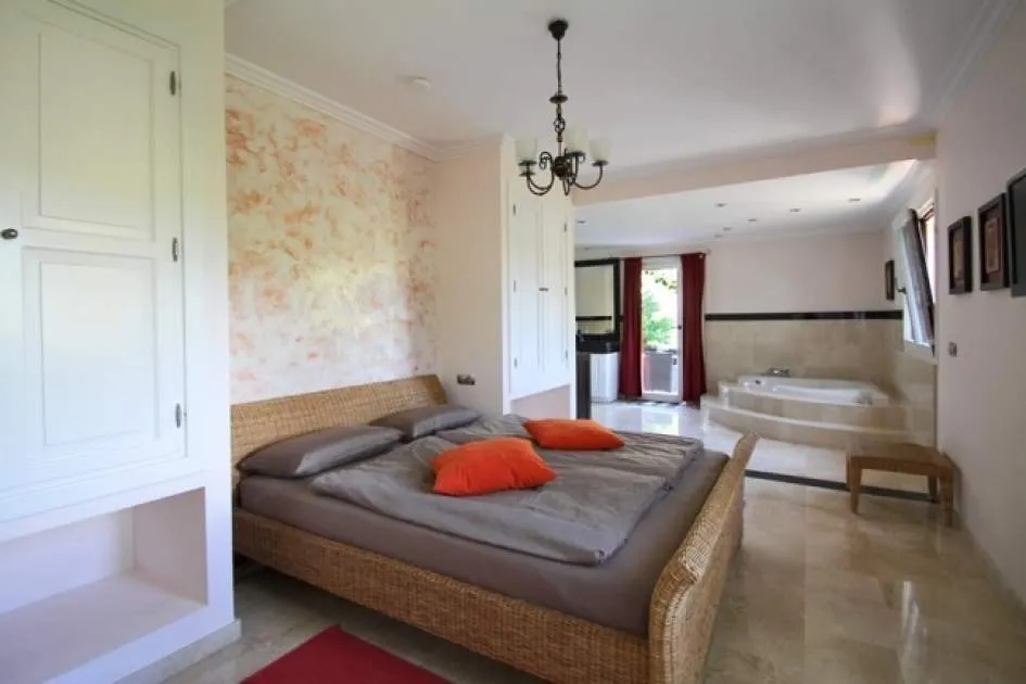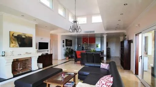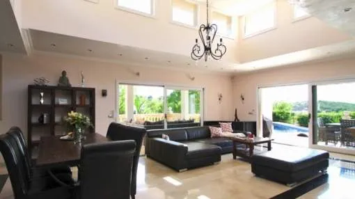 La propiedad fue construida en un solar de 1.600 m² y dispone de varias terrazas cubiertas y descubiertas, una piscina privada y un jardín de diseño mediterráneo. La superficie construido es de 300 m² está dividida en un salón – comedor con chimenea, una moderna cocina abierta, 3 dormitorios, 3 baños, un aseos para invitados, un trastero y el garaje.