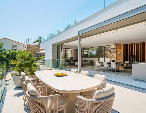 Esta villa de diseño de nueva construcción se encuentra en una parcela llana en Port d’Andratx, en una zona residencial muy demandada por encima de Cala Marmacén, y combina una arquitectura elegante, equipamiento de primera calidad y una ubicación que une perfectamente estilo de vida, tranquilidad y privacidad. Materiales de alta calidad, un concepto espacial bien pensado y un interior elegante caracterizan esta propiedad moderna y al mismo tiempo mediterránea.