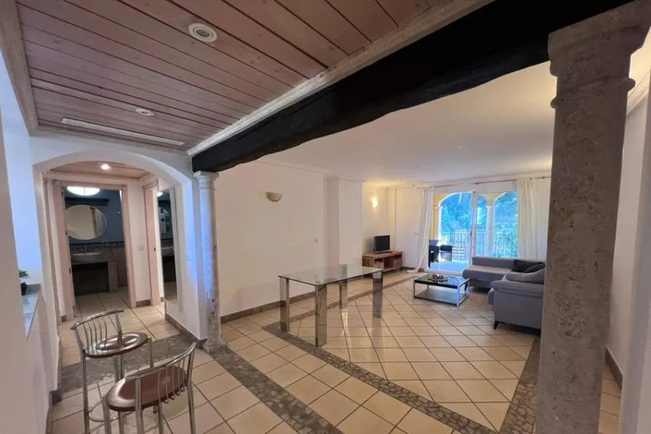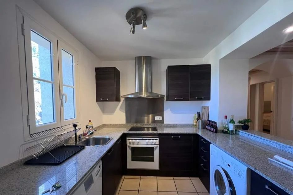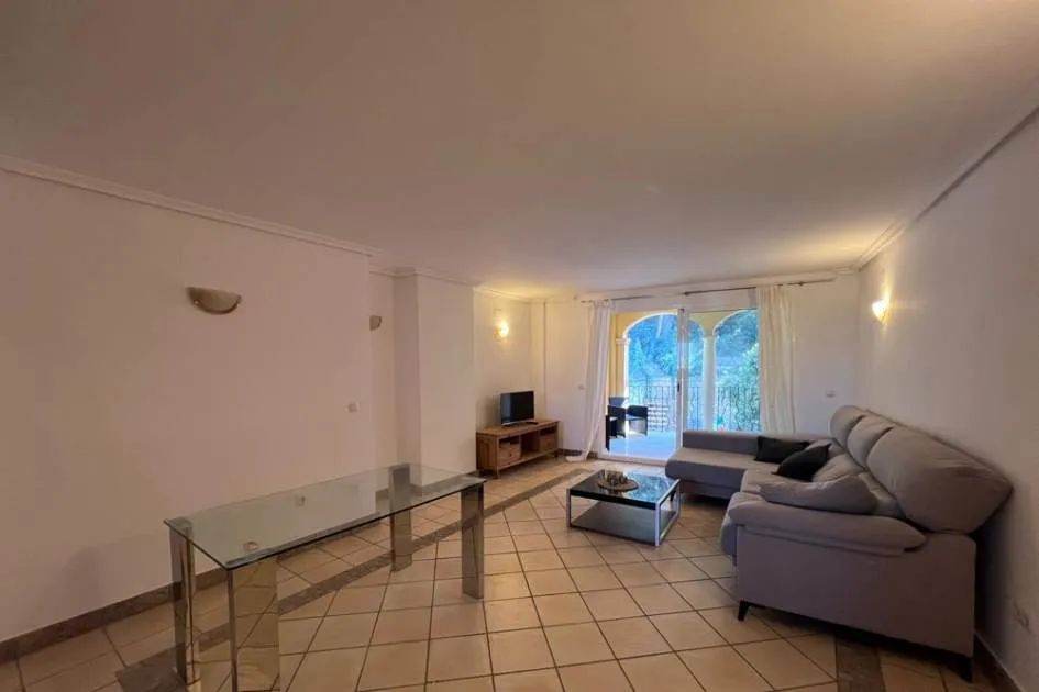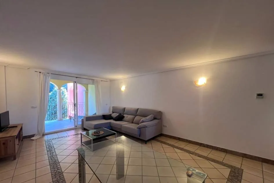 Disponible a partir del 1 de Mayo ___________________________________________________________ Bonito apartamento en un complejo residencial de estilo mediterráneo en Santa Ponsa, en el suroeste de Mallorca. La superficie habitable de 120 m² se distribuye entre un amplio salón-comedor, una cocina semi abierta totalmente equipada, 2 dormitorios y 2 baños. Desde la sala de estar hay acceso a la amplia terraza cubierta con zona de descanso y vistas sobre el territorio del complejo. El apartamento está totalmente amueblado, equipado con aire acondicionado, armarios empotrados, y el edificio tiene un ascensor. El complejo residencial ofrece áreas verdes muy bien cuidadas, 2 piscinas y zona de aparcamiento comunitario. La ubicación es muy céntrica, cerca de la playa, de restaurantes locales, bares, supermercados y centros deportivos. Certificado energéticoTipo: En proceso