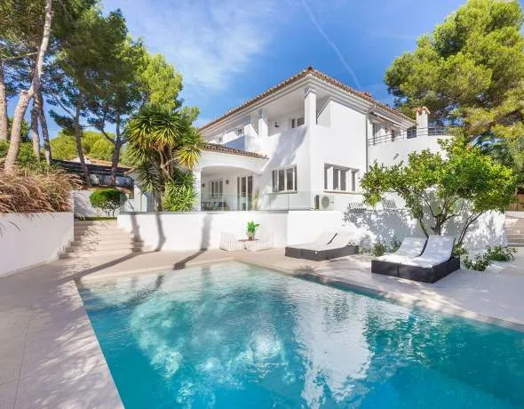 Esta villa, renovada con un estilo moderno y equipada con materiales de alta calidad, se encuentra en una de las urbanizaciones de villas más exclusivas del suroeste, una zona residencial absolutamente tranquila con un vecindario internacional y a solo dos kilómetros del centro de la ciudad. Gracias a las buenas conexiones, se puede llegar a Palma y a las localidades costeras del suroeste, con las playas más bonitas, prestigiosos campos de golf y puertos deportivos, en solo unos minutos en coche.