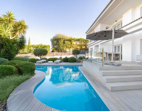 Esta elegante villa modernizada se encuentra en una excelente ubicación, tranquila pero cerca del centro y a pocos minutos en coche de los campos de golf locales, playas y dos puertos deportivos. Ofrece amplias habitaciones, construcción y accesorios de primera calidad, así como una hermosa terraza en la azotea con fantásticas vistas al mar y panorámicas. Acogedoras terrazas cubiertas y descubiertas con zona de barbacoa y piscina, un jardín de bajo mantenimiento y dos plazas de aparcamiento completan la zona exterior.
