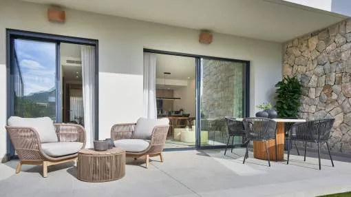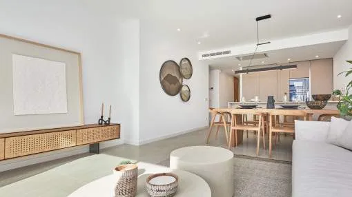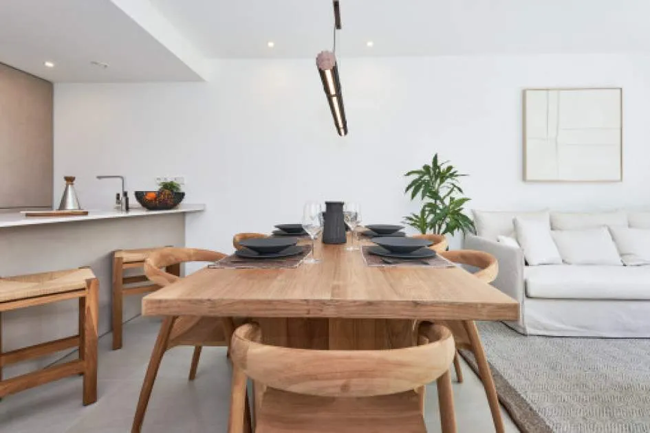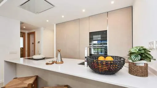 Encimera de Silestone y electrodomésticos Siemens, suelo radiante en los baños, puertas de madera maciza, ventanas de aluminio en color antracita con doble acristalamiento, puertas de terraza a nivel del suelo, persianas eléctricas en los dormitorios, suelos de gres en interior y exterior, sistema de climatización aire-aire con salidas de aire integradas, Paquete de iluminación LED Otras unidades de este proyecto: ReferenciaConstruidoDormitoriosPisoPrecio122309212 m²31€ 1.300.000,- 122309A203 m²31€ 1.150.000,- 122309B177 m²31€ 960.000,- 122309C181 m²30€ 870.000,- 122309D112 m²30€ 725.000,- 122309E117 m²30€ 795.000,- Lugar & alrededores: Sant Elm probablemente es uno de los pueblos más florecientes de la isla. La sencillez del antiguo pueblo de pescadores crea un ambiente muy acogedor. Cuenta con unos 500 habitantes y es ideal para combinar unas tranquilas vacaciones de mar y montaña. En las vistas a la bahía destaca el islote de Sa Dragonera, de 4 kilómetros de longitud, que sobresale del agua como un dragón dormido. El pueblo es famoso por los manjares frescos y las fabulosas puestas de sol; también ofrece la posibilidad de vivir con mucha privacidad sin tener que renunciar a la proximidad de lugares conocidos. Por ejemplo, el famoso puerto de Port d'Andratx está a sólo 10 minutos en coche y la capital de la isla, Palma, a 30 minutos.
