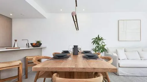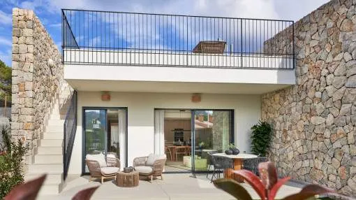 Descripción del inmueble: En una ubicación privilegiada de Sant Elm, uno de los pueblos costeros más encantadores del suroeste de Mallorca, se construye un exclusivo complejo residencial con solo 20 unidades, rodeado de naturaleza mediterránea, frente a la isla de Dragonera y con vistas al mar turquesa. Sant Elm enamora con su ambiente estilo Ibiza, pequeños restaurantes, tiendas con encanto y una atmósfera tranquila y apacible. Aquí se vive la Mallorca auténtica – llena de carácter y belleza natural. El ático destaca por sus vistas al mar, la cercanía a la playa a pie, su clase energética A y un diseño limpio y mediterráneo que conecta armónicamente los espacios interiores y exteriores. El entorno de pinares y senderos costeros ofrece una experiencia de relajación total en la naturaleza. Este exclusivo proyecto de obra nueva incluye 8 áticos, 8 apartamentos con jardín y 4 dúplex con jardín y terraza en la azotea. Ofrece amplias zonas exteriores, una elegante piscina comunitaria, cocheras privadas y está desarrollado por un promotor de renombre con gran atención al detalle. La arquitectura apuesta por tonos naturales, ligereza y durabilidad – en perfecta armonía con la elegancia mediterránea. El ático ofrece aprox. 95,52 metros cuadrados de superficie construida en una sola planta, con tres dormitorios y tres baños, dos de ellos en suite. El luminoso salón-comedor con cocina americana con isla se abre a una terraza de 21,72 metros cuadrados. La joya es la azotea de 94,74 metros cuadrados, que ofrece impresionantes vistas al mar y a la bahía de Sant Elm. Detalles del equipamiento: