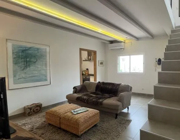 Cuidado con esmero y decorado con muy buen gusto, el apartamento transmite una sensación de calidez y bienestar. En la planta principal se encuentra un luminoso salón, una cocina totalmente equipada con electrodomésticos de alta calidad y el dormitorio principal con baño en suite. En la planta superior, un segundo dormitorio con cama doble se abre a la terraza privada, ideal para relajarse o disfrutar de las noches mediterráneas.