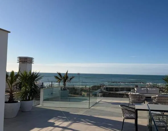 En la planta superior se encuentra una amplia terraza-solárium de aproximadamente 118 m², desde la que se pueden disfrutar impresionantes vistas al mar y al pintoresco entorno. Un ascensor interior conecta todas las plantas de la vivienda, y un garaje privado con estación de carga para vehículos eléctricos aumenta aún más la comodidad y exclusividad de esta propiedad excepcional.