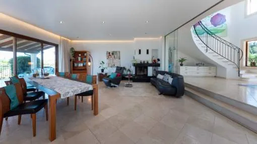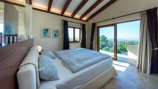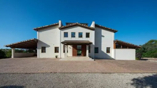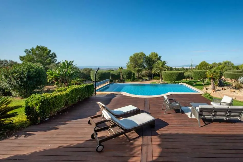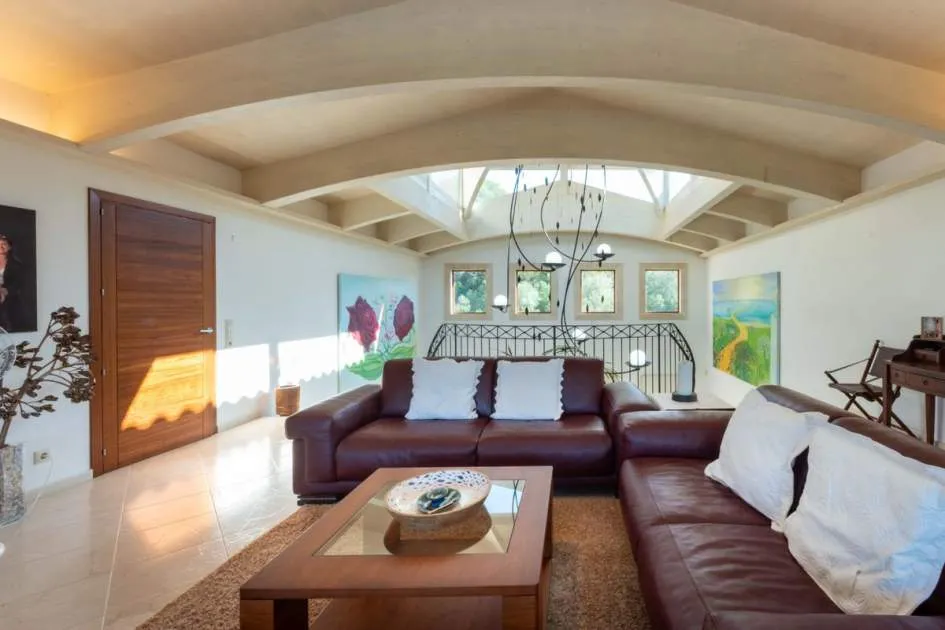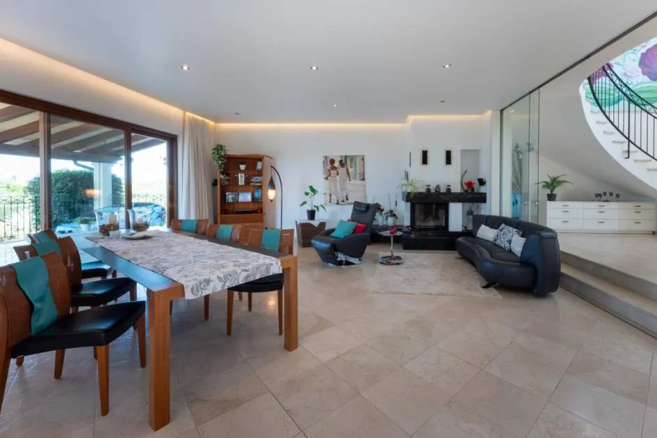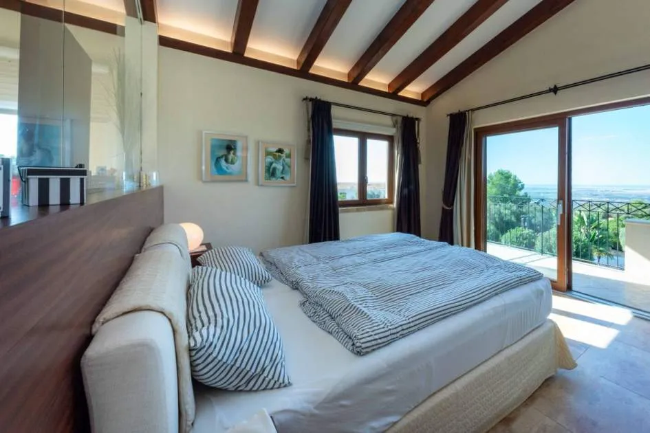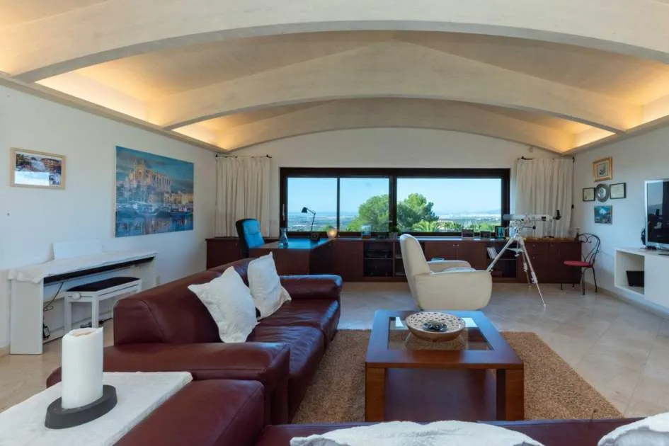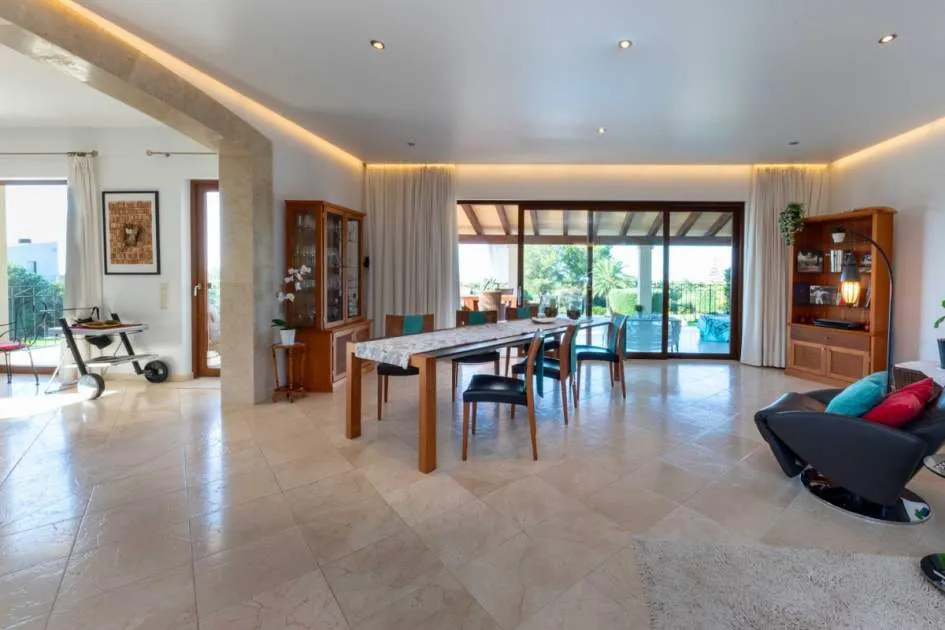 Esta extraordinaria villa construida en 2011 combina el encanto mediterráneo con una construcción de alta calidad y ofrece unas impresionantes vistas panorámicas hasta el mar. Con total privacidad y orientación suroeste, aquí podrá disfrutar de inolvidables puestas de sol. Palma, el aeropuerto y las playas se encuentran a solo veinte minutos, y el campo de golf más cercano, a solo cinco minutos.