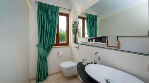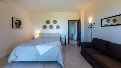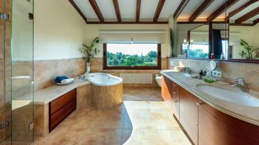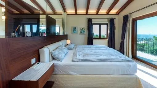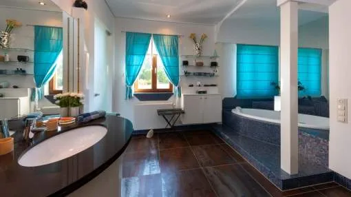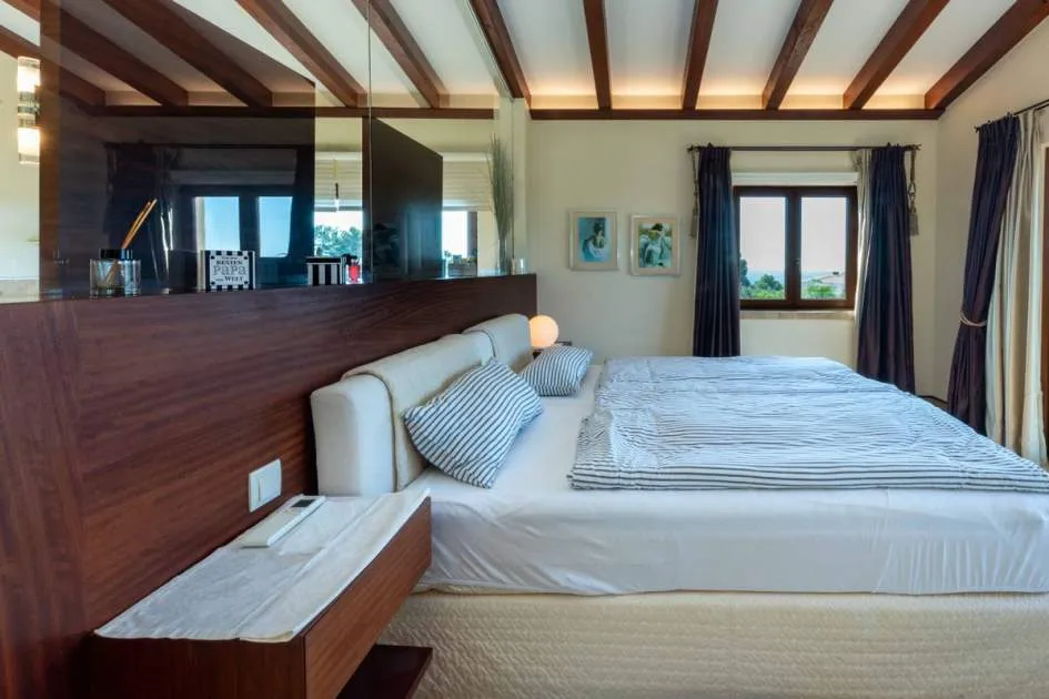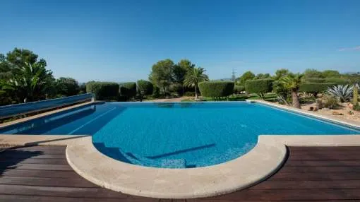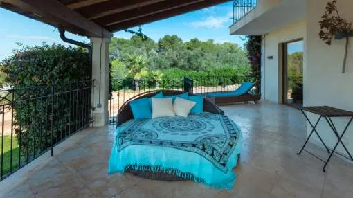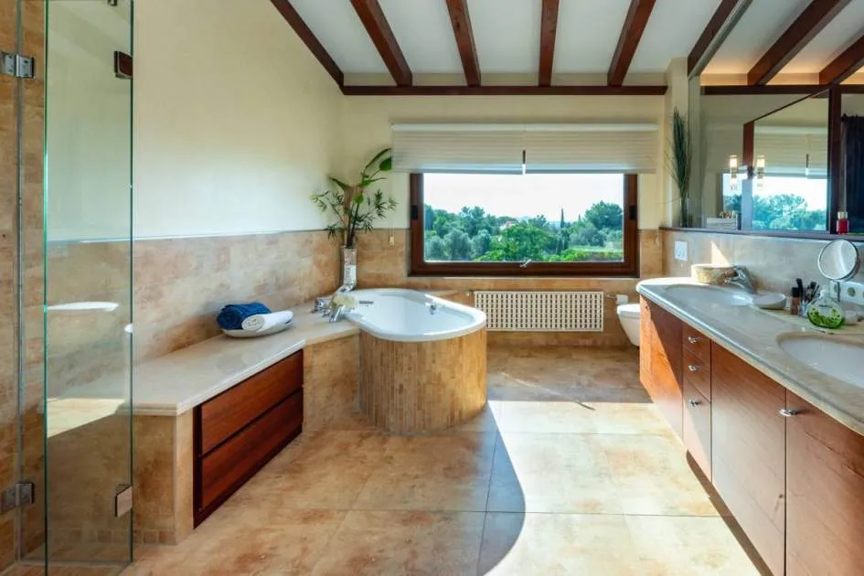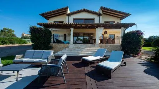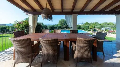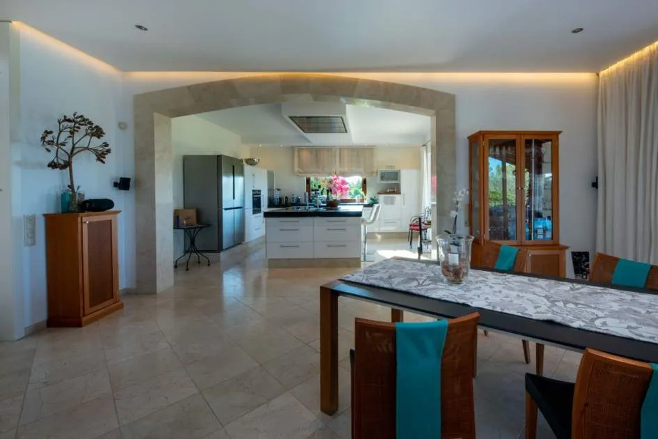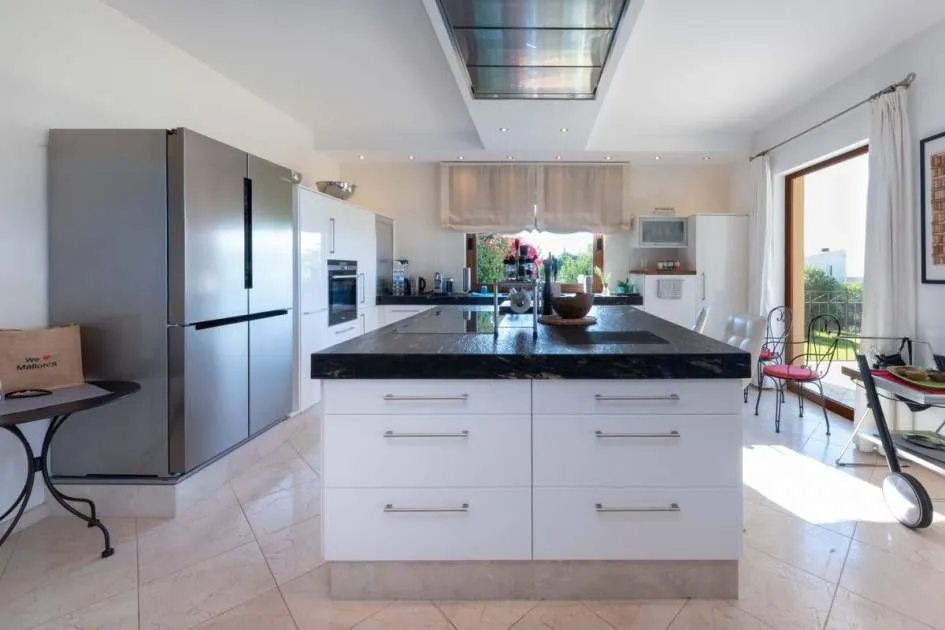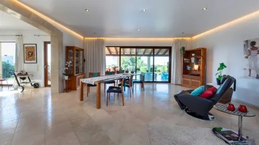 Esta extraordinaria villa construida en 2011 combina el encanto mediterráneo con una construcción de alta calidad y ofrece unas impresionantes vistas panorámicas hasta el mar. Con total privacidad y orientación suroeste, aquí podrá disfrutar de inolvidables puestas de sol. Palma, el aeropuerto y las playas se encuentran a solo veinte minutos, y el campo de golf más cercano, a solo cinco minutos.