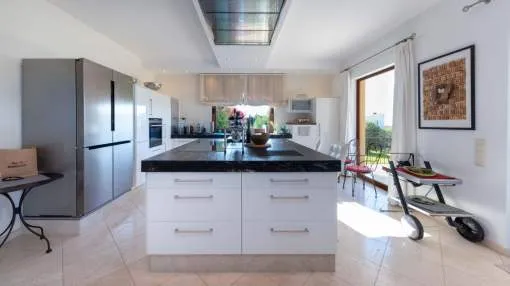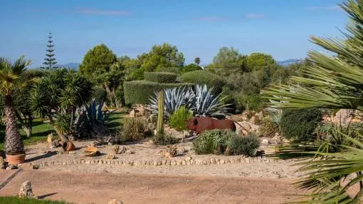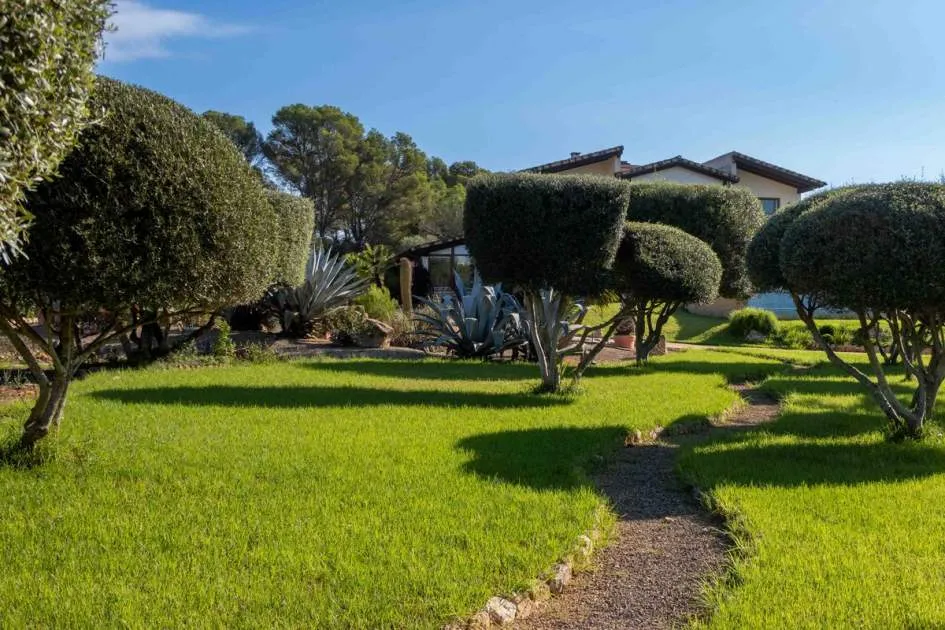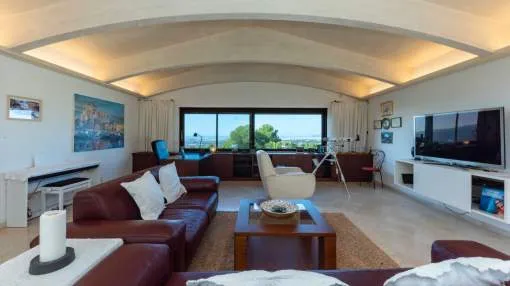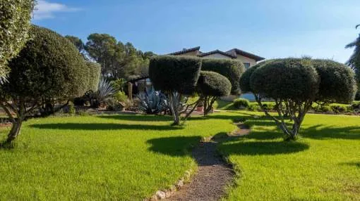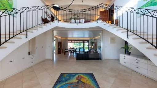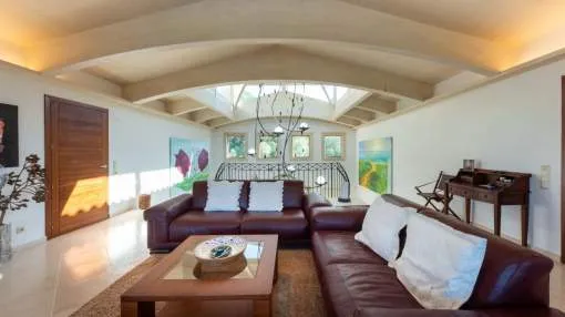 Cabe destacar su extraordinaria arquitectura: la estructura del techo se fabricó a medida en el extranjero y se envió por barco a Mallorca. La casa y el jardín se encuentran en muy buen estado y ofrecen un amplio espacio para una vida exclusiva, con unos 375 metros cuadrados de superficie habitable más 236 metros cuadrados de sótano.
