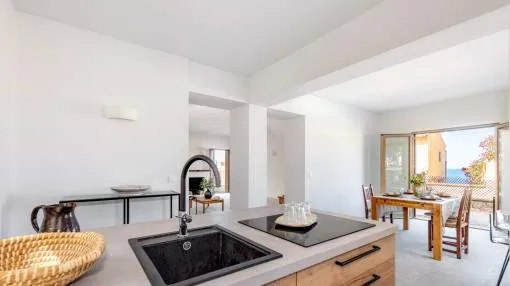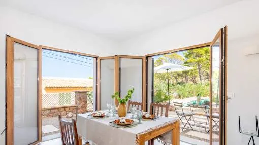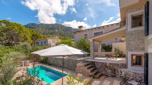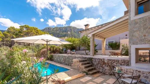 Descripción del inmueble: En el pintoresco pueblo costero de Port des Canonge, enclavado en el espectacular paisaje de la Tramuntana, se esconde esta encantadora casa de piedra natural: un lugar donde Mallorca sigue siendo auténtica. El pequeño pueblo pesquero, alejado del turismo de masas, cautiva con sus coloridas casas, estrechas callejuelas y una idílica playa situada a pocos pasos. Senderos de excursión discurren a lo largo de la costa y por una naturaleza virgen, mientras que los conocidos pueblos de Esporles, Banyalbufar, Valldemossa e incluso Palma están a pocos minutos en coche. La casa, un edificio con historia y muros de piedra natural de 60 centímetros de grosor, fue restaurada con esmero y de forma integral en 2025. Se ha conseguido conservar su encanto tradicional y combinarlo con el confort más moderno. Grandes ventanales abren la vista al mar e inundan las estancias de luz y amplitud. En el interior le esperan una amplia sala de estar con chimenea, una elegante cocina con comedor y acceso directo a la terraza, una habitación de invitados independiente con su propio baño y más dormitorios en la planta superior, todos con baño en suite y magníficas vistas, en algunos casos incluso al mar desde la ducha. El exterior es un refugio mediterráneo: en dos niveles se distribuyen una piscina turquesa, terrazas soleadas y cubiertas, limoneros, vides y un olivo centenario. Ya sea desayunando a la sombra de la veranda o disfrutando de un cóctel al atardecer en el balcón, siempre le acompañará la vista al mar y al paisaje costero único. A partir de septiembre de 2025, esta propiedad especial estará disponible en alquiler por primera vez. Un lugar de retiro para quienes valoran la tranquilidad, la naturaleza y un estilo de vida refinado al más alto nivel, y que, al mismo tiempo, desean disfrutar de la cercanía a los lugares más bellos de la isla. Precios de alquileres mensuales de temporada MesPrecioenero- no disponible - febrero- no disponible - marzo- no disponible - abril- no disponible - mayo- no disponible - junio- no disponible - julio- no disponible - agosto- no disponible - septiembre- no disponible - octubre- no disponible - noviembre- no disponible - diciembre- no disponible - Lugar & alrededores: El viejo pueblo de Banyalbufar entre un lujo de naturaleza y rodeado de terrazas se encuentra en la costa norte-oeste de Mallorca. En 2007 tenía una populación de 591 personas. Debido a su locación en la costa el pueblo tenía que protegerse de invasiones piratas y árabes. De aquí surgió la torre de vigilancia que hoy forma el emblema del pueblo y hace que este pueblo sea una destinación atractiva. Aquí uno encuentra la parte original de Mallorca y poco turismo. Hay varios pinares, una vista fantástica del mar, una costa empinada debido a las condiciones geográficas y una bahía pequeña con playa que atraen a turistas que más en contacto están con la naturaleza de Mallorca.