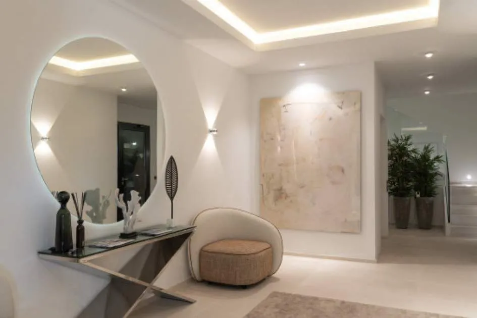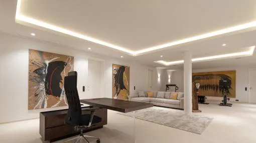 Descripción del inmueble: Experimente el lujo exclusivo en medio del fascinante paisaje de Port d'Andratx con esta impresionante villa construida en 2023. Una obra maestra de la arquitectura moderna, esta propiedad establece nuevos estándares en términos de diseño y confort. Enclavada en la prestigiosa ubicación de Puerto Andratx, ofrece mucho más que un espacio vital excepcional. El suelo, una elegante combinación de parquet de alta calidad y exquisita piedra, enfatiza la exclusividad de esta villa. Destaca especialmente la chimenea, que crea un ambiente inigualable en las noches frescas. La piscina privada permite refrescarse y relajarse en los calurosos días de verano, redondeando a la perfección esta propiedad de ensueño. La villa se extiende en dos niveles y cuenta con una impresionante superficie habitable de aproximadamente 691 metros cuadrados, que impresiona por su bien pensada distribución de las habitaciones y sus exquisitos materiales. Ofrece un total de 7 espaciosas habitaciones, incluyendo 5 dormitorios y 7 baños, garantizando privacidad y comodidad para cada miembro de la familia o invitado. La calidad de las instalaciones y accesorios de esta propiedad no deja nada que desear y encaja perfectamente en la categoría de "lujo". Esta villa en Port d'Andratx representa una oportunidad única de disfrutar del lujo moderno en uno de los lugares más codiciados de la isla. Redefine lo que significa vivir con un estilo exquisito y una calidad inigualable. Experimente la casa de ensueño definitiva en uno de los barrios más atractivos de Mallorca. Lugar & alrededores: El puerto de Andratx es uno de los puertos naturales más famosos de Mallorca. Originalmente un pequeño pueblo pesquero, con los años se ha convertido en uno de los lugares más exclusivos y codiciados de la isla, gracias a sus extraordinarios chalets, hoteles de lujo y actividades náuticas. La gastronomía de alto nivel también se ha aprovechado de ello, por lo que encontrará todo lo que se pueda desear en los numerosos restaurantes. Si el Puerto de Andratx no le cautiva con sus bares, boutiques y restaurantes, entonces merecerá la pena hacer una excursión a la hermosa naturaleza que rodea el pueblo. Las bahías cercanas, como Cala Llamp, Cala Moragues o Cala d'Egos, ofrecen mucho relax. La cultura pesquera del puerto no se ha suprimido en absoluto; realmente se está reavivando. Por ello, en la lonja situada en el muelle se vende la pesca fresca del día. También hay algunos monumentos de gran interés histórico y arquitectónico en el puerto, como Sant Carles en La Mola o las torres de defensa. Las inolvidables puestas de sol y el toque especial que hacen que este lugar sea tan único se pueden disfrutar al final del día con una buena copa de vino en el puerto.