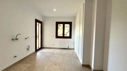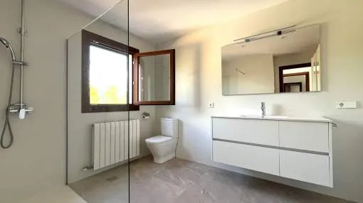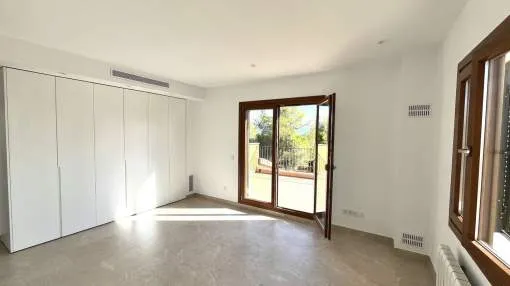 En la planta superior se encuentran los dormitorios principales, todos con baño en suite y terrazas privadas que bañan las estancias de luz natural y ofrecen vistas abiertas. Uno de ellos dispone de vestidor, aportando un extra de comodidad y estilo.