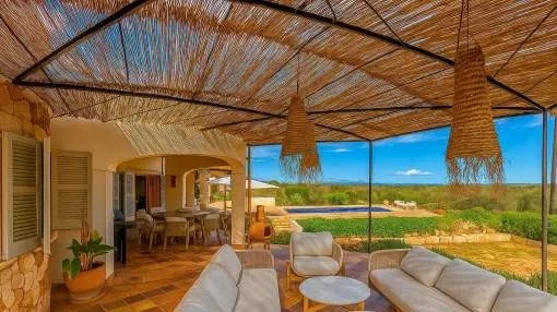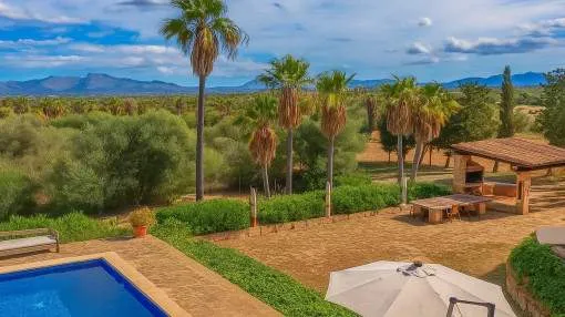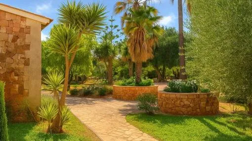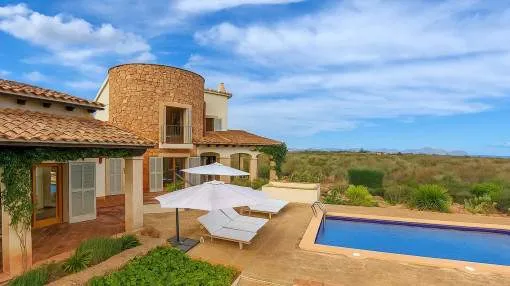 Esta excepcional finca combina el confort moderno con el encanto mediterráneo y ofrece un oasis de tranquilidad con espectaculares vistas al mar. En una amplia parcela de aprox. 26.000 metros cuadrados, podrá disfrutar de una privacidad absoluta a la vez que se beneficia de excelentes conexiones - Can Picafort y Santa Margalida están a pocos minutos, y se puede llegar a la playa en sólo 15 minutos.