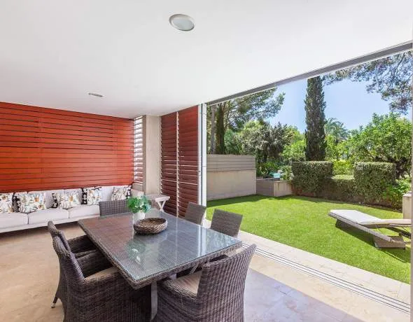 Este amplio y elegante apartamento con jardín se encuentra en una de las comunidades más exclusivas del suroeste de Mallorca, a tan solo unos pasos del renombrado campo de golf de Bendinat. La propiedad consta de seis edificios con un total de 80 unidades y cuenta con un servicio de seguridad 24 horas. Rodeada de un hermoso jardín mediterráneo con terrazas cuidadosamente diseñadas, dos piscinas comunitarias y una piscina infantil separada, esta finca es un oasis verde de tranquilidad y estilo de vida exclusivo.