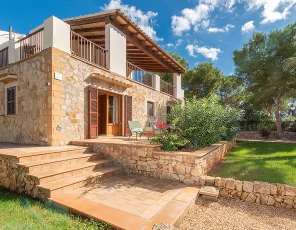 Esta encantadora villa en la segunda línea de mar de Portopetro combina el encanto mediterráneo con la modernidad atemporal. También cuenta con una atractiva licencia de alquiler vacacional. Solo unos pasos le separan de la playa y del idílico puerto del pueblo.