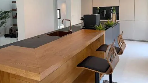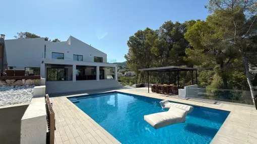 Exclusiva villa ubicada en una de las zonas más privilegiadas de Mallorca, totalmente renovada en 2025. Cuenta con una espectacular piscina, jacuzzi y gimnasio propio. Desde la propiedad se disfrutan impresionantes vistas a la montaña, además de vistas parciales al mar y a la ciudad.