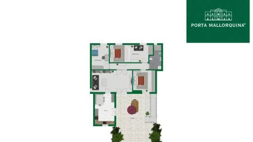 Show on mapEncantadora casa de pueblo en Pollensa con vistas panorámicas a la bahía y jardín mediterráneo