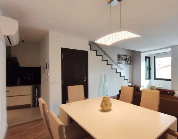 En los pisos superiores disfrutamos de una vivienda tipo dúplex con vistas espectaculares a Llucmajor y su Catedral. Diseñada con mucho mimo y pensando en el confort, se vende completamente amueblada y lista para entrar a vivir para una persona sola o pareja.