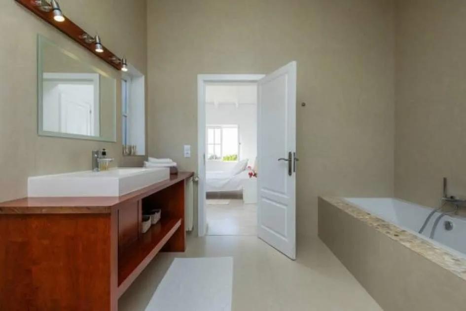 Las características incluyen calefacción central de gas, aire acondicionado en todos los dormitorios y en la sala de estar, una sala de estar con chimenea, un comedor independiente y una cocina totalmente equipada. La distribución de las habitaciones es cómoda: en la planta superior hay 2 dormitorios, cada uno con su propio cuarto de baño en suite, en la planta baja hay otros 2 dormitorios y un cuarto de ducha más pequeño. En total, la casa tiene 4 dormitorios y 3 baños.