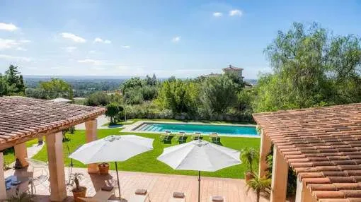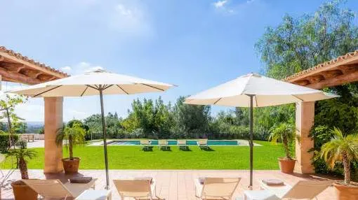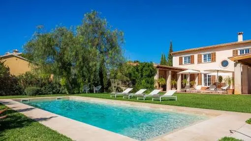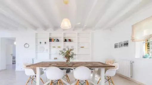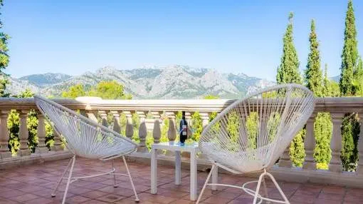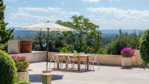 Este chalet bien cuidado en Sa Coma, un pueblo perteneciente al municipio de Bunyola, está a sólo unos 20 minutos de Palma. La ubicación elevada ofrece vistas panorámicas hasta la bahía de Palma. La casa tiene una superficie habitable de unos 260 metros cuadrados y se encuentra en una parcela totalmente vallada de unos 2.400 metros cuadrados. La amplia zona exterior incluye un hermoso jardín, una gran piscina de agua salada de 11 x 4 metros y una terraza en forma de U equipada con muebles de jardín y una barbacoa.