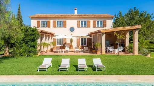 Este encantador chalet está situado en Campanet y goza de unas vistas de ensueño a su propio jardín, así como al paisaje circundante hasta el mar.