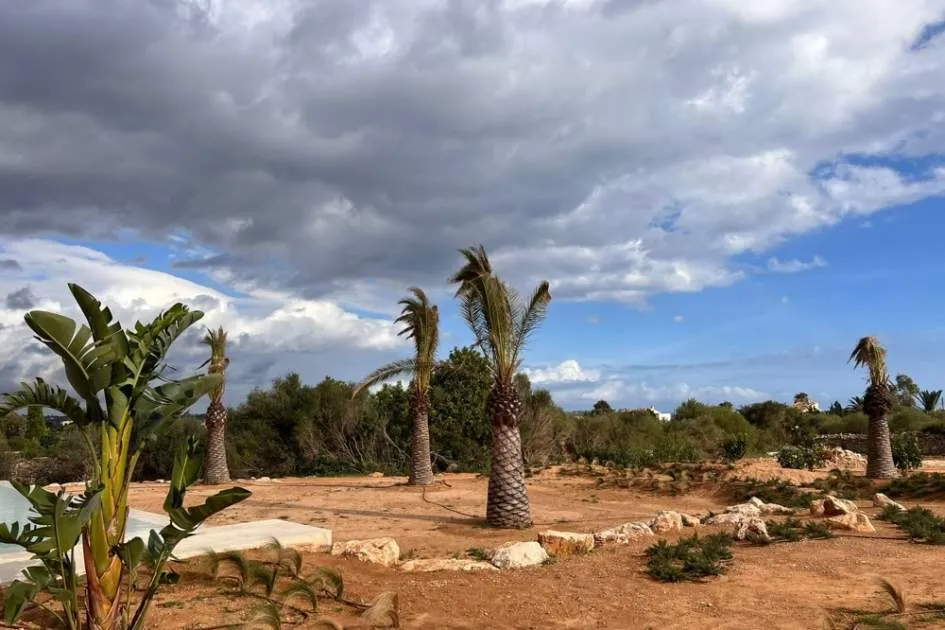 El exterior destaca por su característica vegetación mallorquina y el jardín de diseño con avenida de palmeras. El elemento principal es la impresionante piscina infinita de 15m, climatizada y acompañada por una zona para tomar el sol.