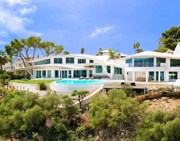 Esta extraordinaria villa de lujo es el proyecto del arquitecto sudamericano Alberto Rubio. Cautivan los tejados curvos con interesantes construcciones de vigas y la amplitud de las zonas interiores y exteriores. Las luminosas habitaciones con techos muy altos crean un ambiente único. Esta lujosa propiedad ofrece, en niveles escalonados, una impresionante y luminosa zona de estar con un salón, un comedor, una cocina moderna, dos amplios dormitorios con baños en suite, otros tres dormitorios con baños propios y una zona de gimnasio con fantásticas vistas a la piscina y al mar abierto. La villa encaja perfectamente en el terreno profusamente ajardinado y regado automáticamente en una ubicación privilegiada de la villa por encima de Cala Marmacén, ofreciendo sol todo el día y una fantástica vista de 180° al mar abierto. También cuenta con amplias terrazas cubiertas y descubiertas con una piscina infinita integrada, una zona de barbacoa con cocina de verano y un amplio garaje doble. La villa posee una licencia de alquiler vacacional y se sometió a una profunda renovación en 2023.