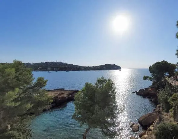 Este bonito apartamento se encuentra en primera línea de mar y ofrece desde la quinta planta unas magníficas vistas panorámicas al mar y a la bahía de Santa Ponsa.