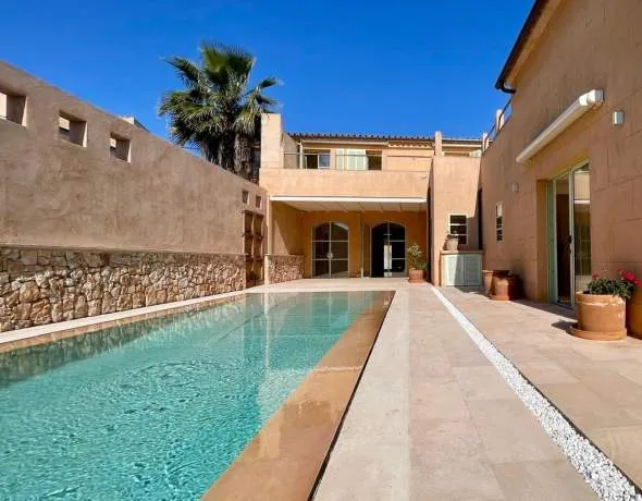 Exclusiva casa de pueblo con acabados de alta calidad, piscina de agua salada climatizada y ascensor en el corazón de Ses Salines