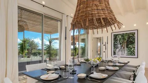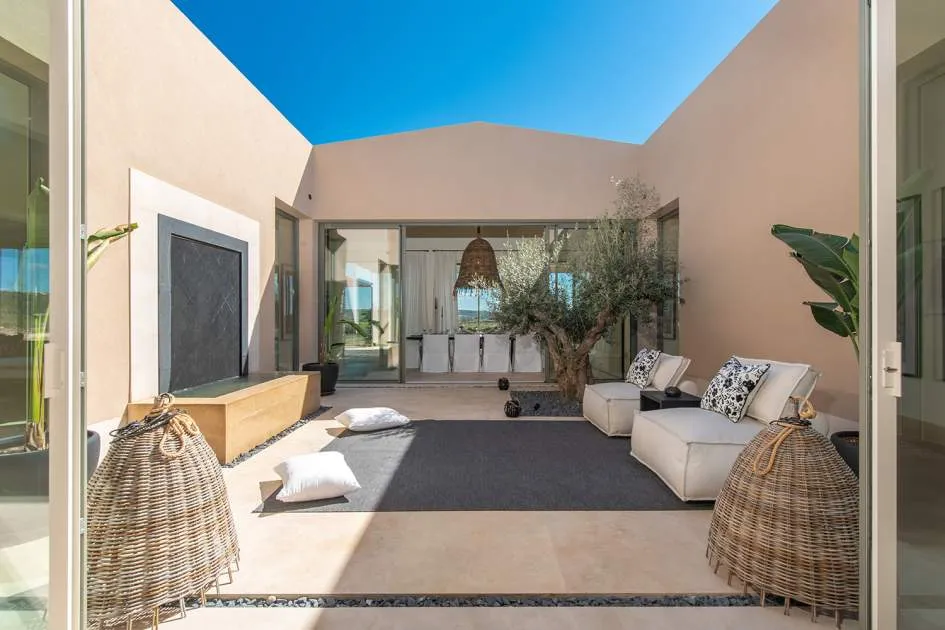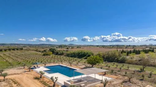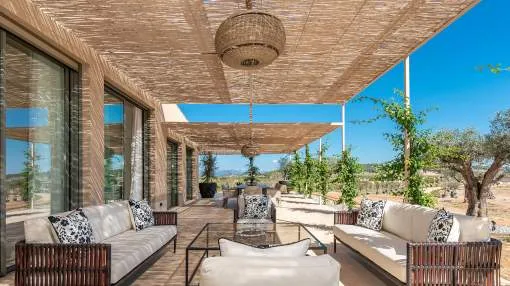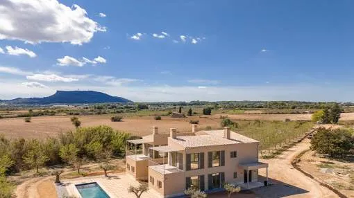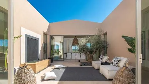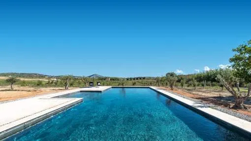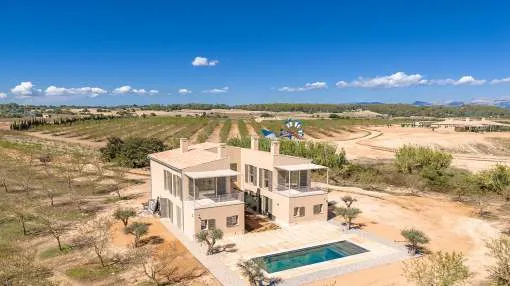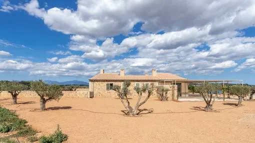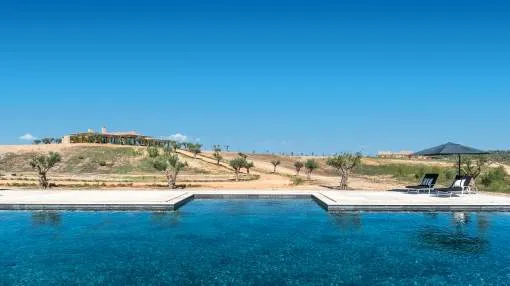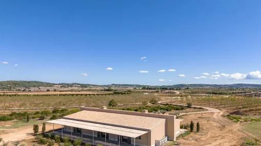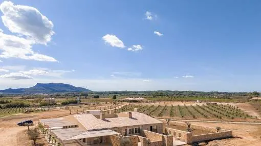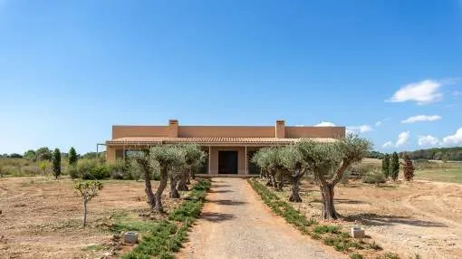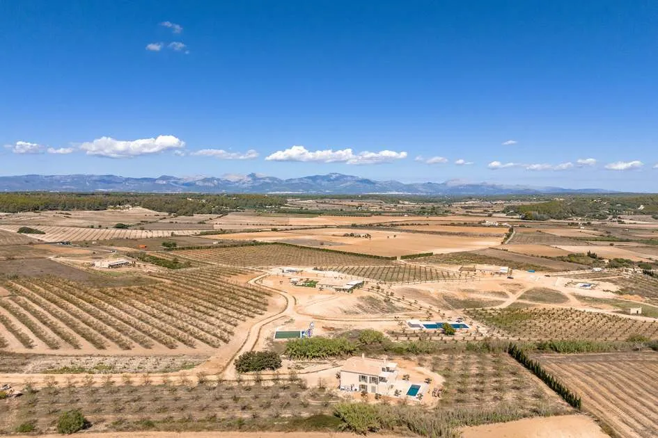 Esta extraordinaria y lujosa propiedad, única en su clase, está situada en medio del apacible paisaje de Algaida. Ubicado en una parcela de aproximadamente 150.000 metros cuadrados, este proyecto único combina arquitectura atemporal, tecnología moderna y una profunda conexión con la naturaleza inspirada en los principios del feng shui. La propiedad goza de fantásticas vistas panorámicas del campo y las montañas circundantes.