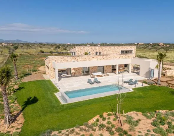 Esta exclusiva finca de nueva construcción está situada en una zona tranquila cerca de Santanyí y combina armoniosamente la arquitectura moderna, el carácter mediterráneo y la construcción de alta calidad. La elegante fachada de piedra natural confiere a la propiedad un auténtico carácter de finca y la integra perfectamente en el paisaje circundante.