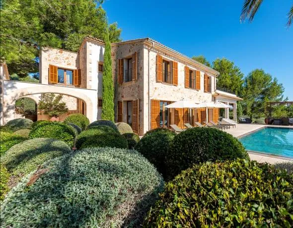 Esta lujosa finca, construida en estilo mallorquín, se alza sobre una colina en Porreres y ofrece unas vistas panorámicas impresionantes de toda la isla. Edificada en 2013 con gran atención al detalle y materiales de alta calidad, combina el confort moderno con elementos tradicionales como vigas de madera y piedra natural, transmitiendo una elegancia atemporal y un encanto mediterráneo.